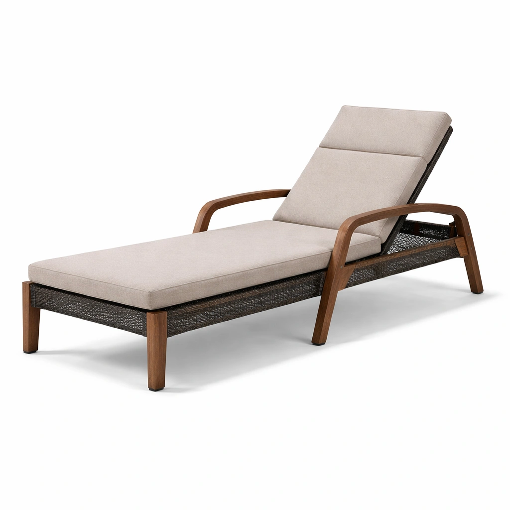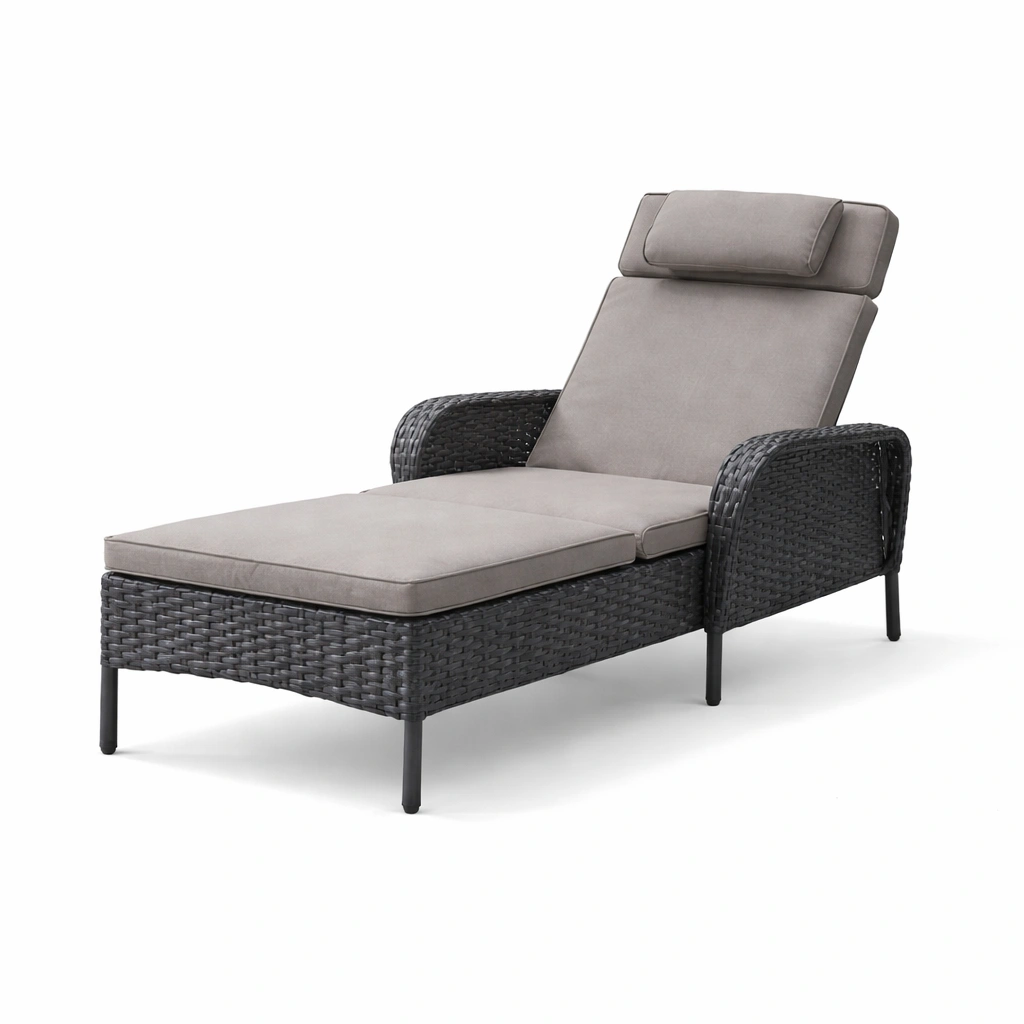 Tumbona ajustable de aluminio y ratán gris 200x70x35 cm
